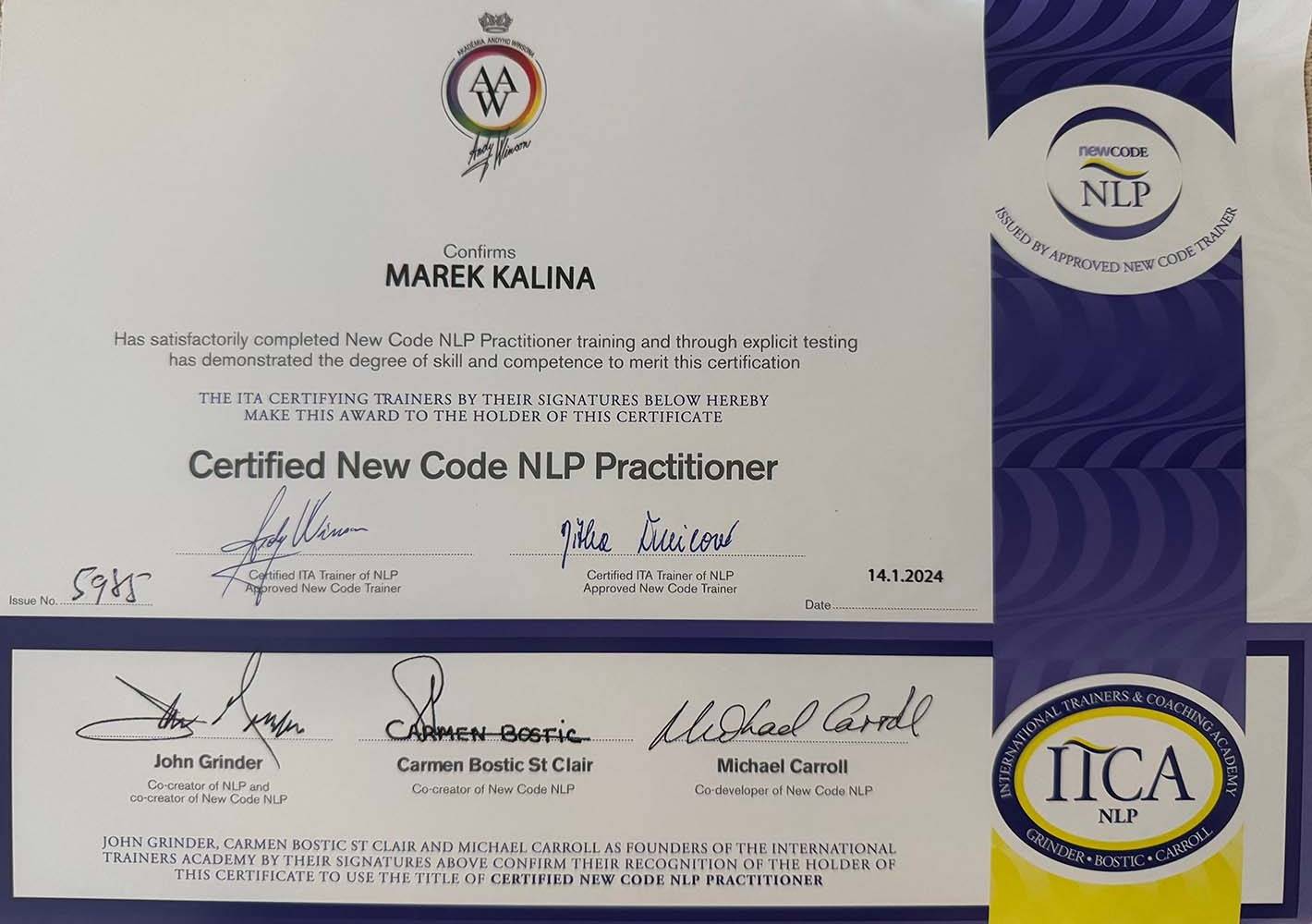 Certifikovaný kurz NLP new code (odkaz na certifikát)