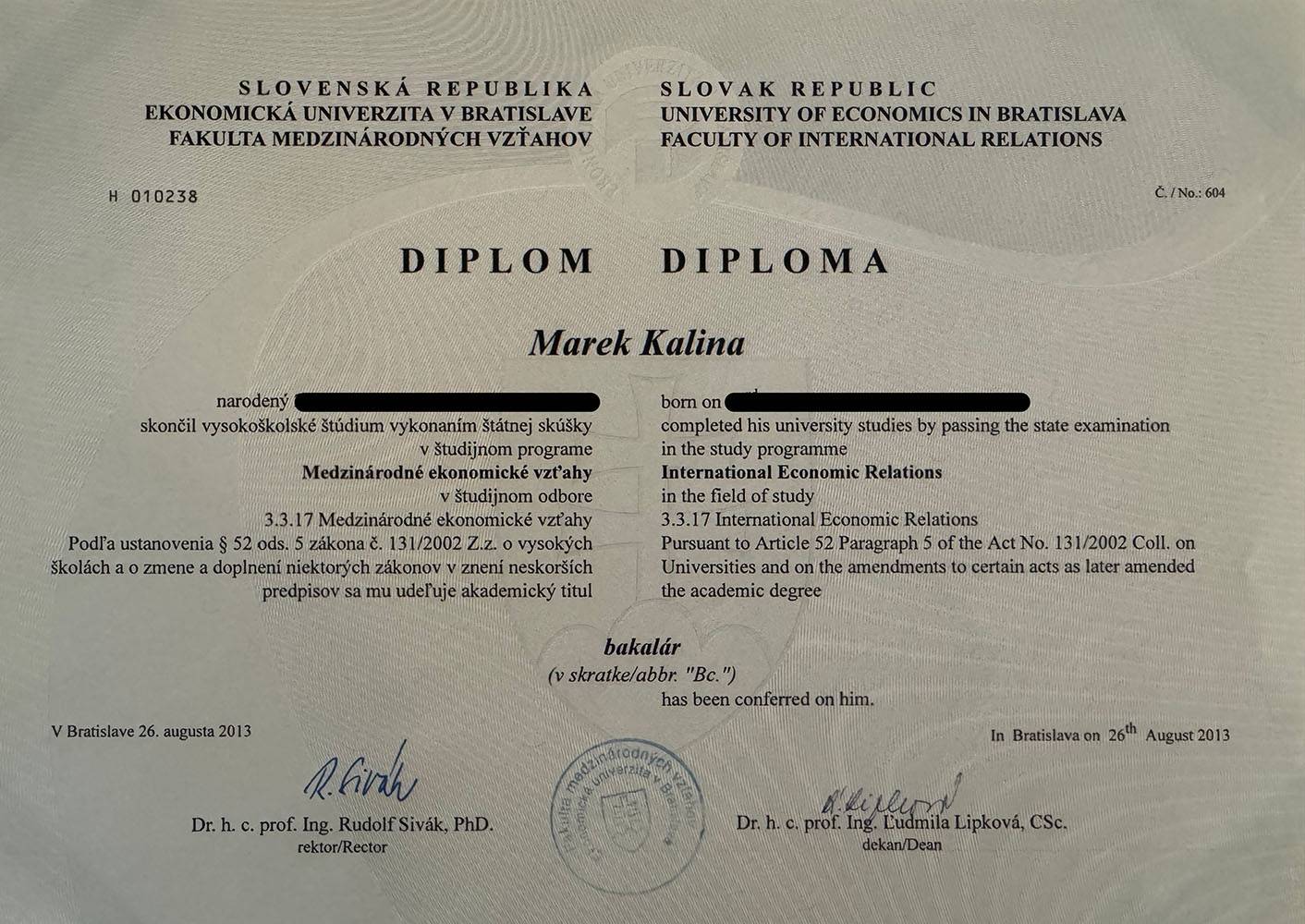 Ekonomická univerzita v Bratislave (EUBA)(odkaz na diplom)