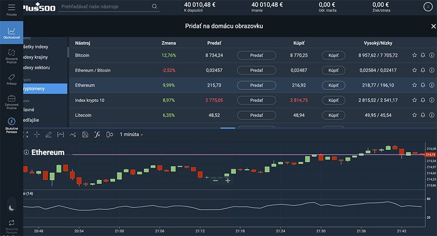Plus500 je rovnako priaznivý pre začiatočníkov, ako aj skúsených investorov v obchodovaní CFD. Ak ale začínate s obchodovaním CFD na akcie, komodity, indexy, kryptomeny tak si otvorte najprv Plus500 DEMO účet zdarma. Na demo účte môžete testovať svoje stratégie a tak sa naučiť ako investovať peniaze.